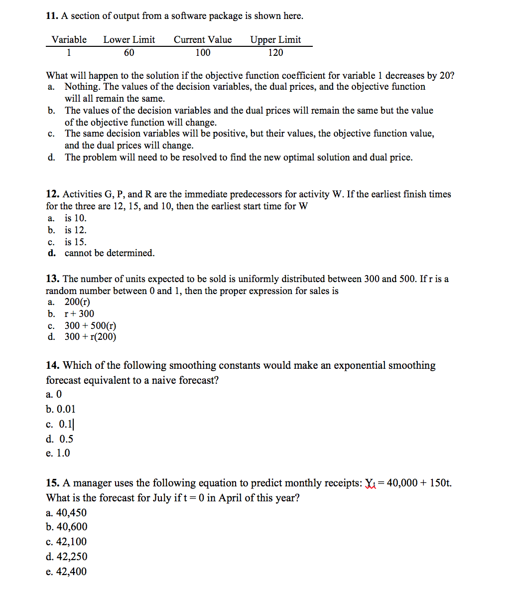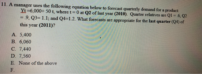 Solved 11 A Manager Uses The Following Equation Below To Chegg Com