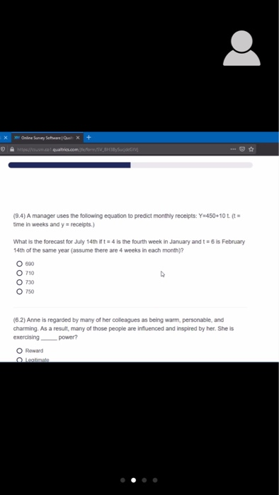 A manager uses the following equation to predict monthly receipts. Y-450-10 Lt time in weeks and y receipts What is the fore. An exponentially smoothed forecast and a smoothed trend factor.